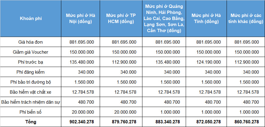 Bảng giá xe